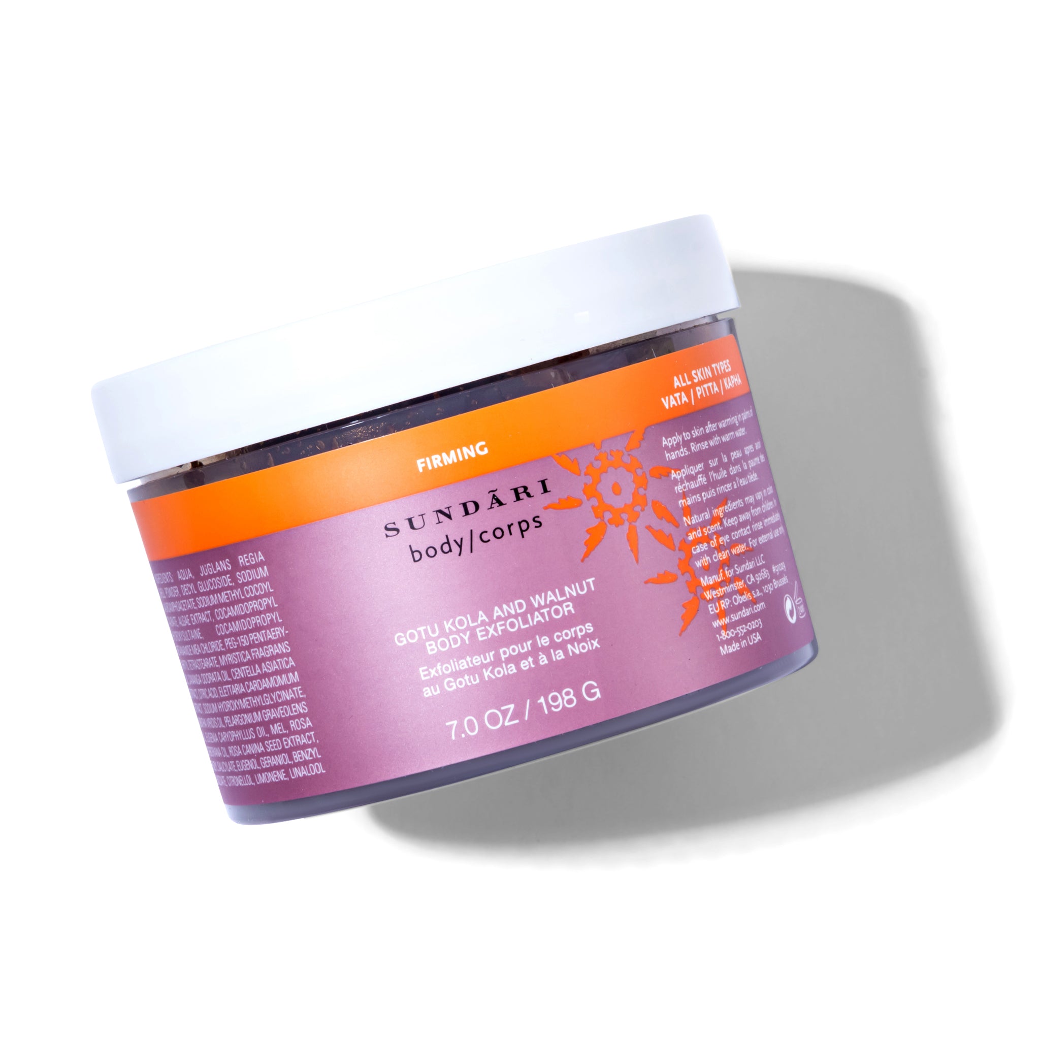 water/aqua/eau, juglans regia (walnut) shell powder, decyl glucoside, lauryl glucoside, aloe barbadensis (aloe vera) leaf juice, sodium cocoamphoacetate, glycerin, oryza sativa (rice) seed extract, centella asiatica (gotu kola) extract, spirulina platensis (algae) extract, coco-glucoside, glyceryl oleate, lactobacillus/arundinaria gigantea (bamboo)ferment filtrate, elettaria cardamomum (cardamom) seed extract, eugenia caryophyllus (clove) bud oil, myristica fragrans extract, mel extract, cananga odorata (ylang ylang) flower oil, pelargonium graveolens (geranium) leaf oil, rosa damascena (rose) flower oil, rosa canina (rosehip) seed extract, syringa vulgaris (lilac) extract, mentha viridis (spearmint) leaf oil, xanthan gum, gluconolactone, sodium benzoate, citric acid